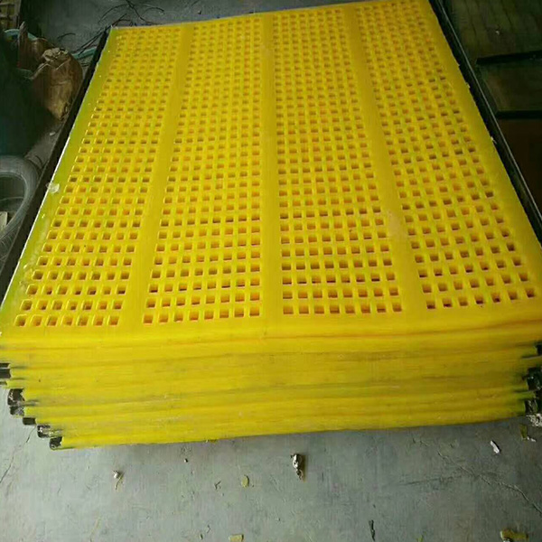 按聚氨酯篩板結(jié)構(gòu)形式分為四種: 鑲嵌式 螺栓聯(lián)接 壓條聯(lián)結(jié) 篩鉤聯(lián)結(jié)。例如壓條連接式:請先將篩板放置篩面上,然后根據(jù)篩子的支撐梁結(jié)構(gòu)進(jìn)行安裝。一般應(yīng)在篩機(jī)的兩側(cè),篩板的上層,沿下料方向用寬度適宜的u型長條鐵板隔適當(dāng)距離鉆上螺絲孔,然后用螺栓與底層支撐梁擰緊,使篩板牢牢固定在中間。支撐梁和長條鐵板與篩板的接觸面好用橡膠條(可利用舊膠管)襯墊。篩子中間的支撐梁上方,也可按此方法安裝。我廠生產(chǎn)的篩網(wǎng)其抗拉強(qiáng)度,反彈指數(shù)、耐磨性能均處于國內(nèi)外同類產(chǎn)品的先進(jìn)水平,可滿足各種等級機(jī)配需求。